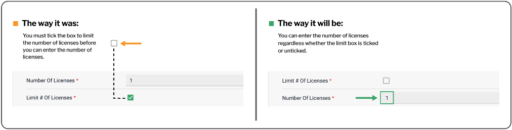 Previously, you had to set a license cap just to track usage. That’s no longer the case.