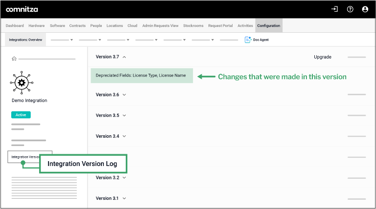 Now, before you hit that “Upgrade” button, you can review a full Integration Version Log to see: